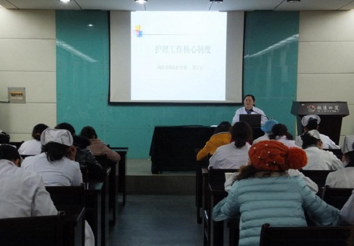 本次培训的主要内容是护理工作核心制度,授课者结合大量临床护理工作中典型案例分析,分别就查对制度中的医嘱查对制度、输血查对制度、服药注射输液处置查对制度、手术安全核查制度、护理不良事件报告与处理制度、分级护理工作制度、医嘱执行制度等护理核心制度作了详细的诠释,并针对护理实践工作中存在的薄弱环节、安全隐患等,阐述了严格执行护理工作核心制度的重要性和必要性。
