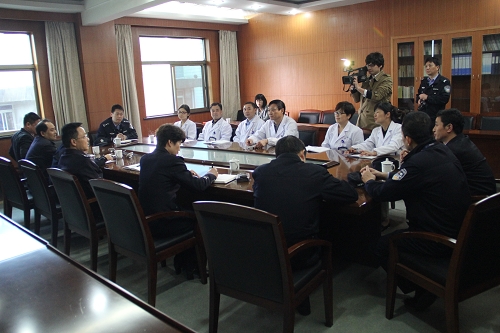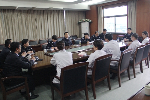 根据市公安局开展教育实践活动安排,4月16日,市委常委、政法委书记、市公安局长邹河到杨家山派出所“当一天基层民警”。下午2:40,邹河一行来我院走访调研,与院领导共商“平安医院”建设工作。座谈会上,邹河指出,杨家山派出所辖区治安状况复杂,有多家医院、学校这些重点单位,广大民警要狠抓管理,全面熟悉辖区情况,不断创新管理方式,采取有效措施进一步保障医务人员和患者人身安全,维护医院良好医疗环境;市公安局将通过群众路线教育实践活动,带好公安队伍,让群众满意。