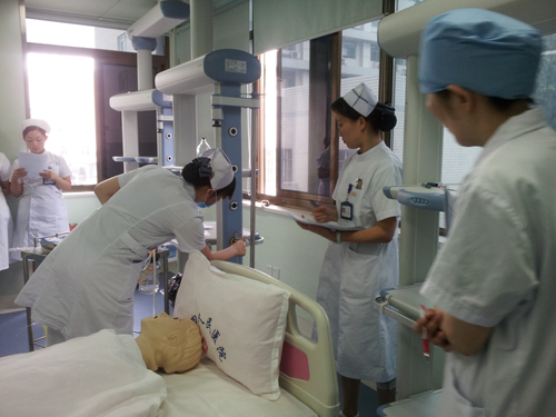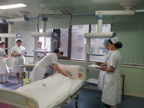 本次考核先发放评分表到各科室,再由考核老师对护士进行集中规范化示教及培训,最后按初级和中级分层次进行考核。考核过程中监考老师本着严肃认真、公平公正的态度,从患者评估、护士准备、环境准备、用物准备、操作规范、熟练程度、人文关怀、应急处理、理论知识等方面进行综合考评,并当场对每位护士在操作中出现的问题和不足之处进行讲评。全院近200名护士参加了考核。