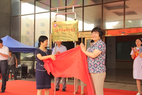 省卫生计生委副主任武琼宇、铜陵市政府副市长叶萍为我院“三级甲等妇幼保健院”揭牌