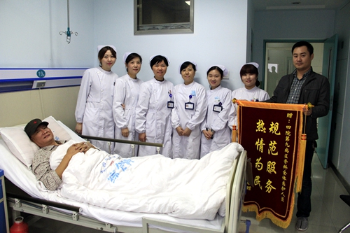 日前,骨科病区医护人员收到19床住院患者及家属送来的一面锦旗,赞扬柯仁德副主任医师、时荣玉主治医师和全体护士们“规范服务、热情为民”,在病人手术及住院期间得到骨科医护人员的悉心照料,让他感受到了家的温暖和亲人般的呵护。