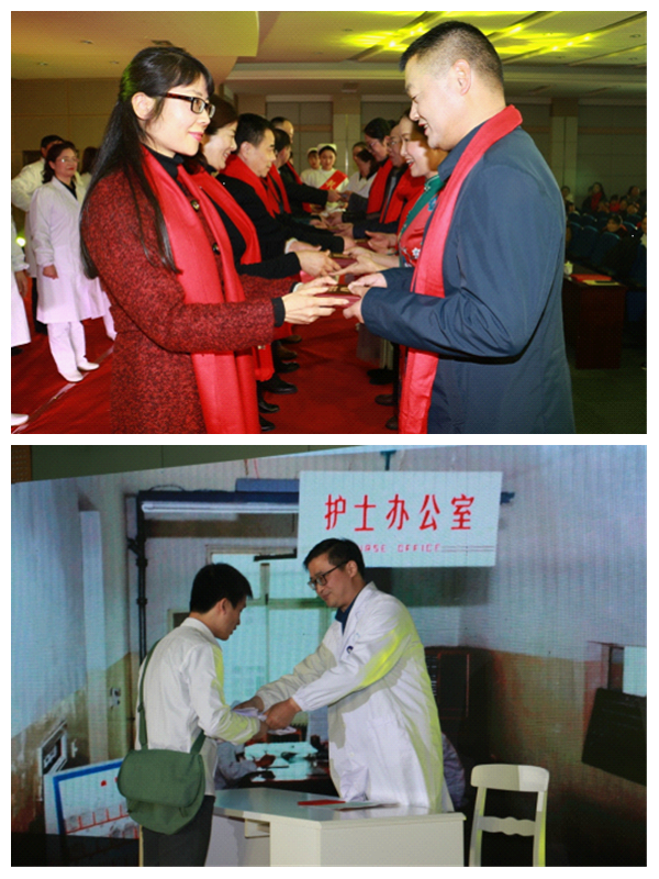 为落实院职代会提案,表彰和奖励长期以来为医院发展做出贡献的职工,元月11日下午,我院在门诊七楼第一会议室举办2020年迎春联欢会,对院龄30年职工进行表彰。院领导班子成员、中层干部和职工代表共300余人参加了大会。 大会表彰了阮百根、严晓芳、丁智红等51位院龄30年职工,院党委书记於凤霞带领院班子成员向受表彰人员颁发了纪念奖章,对他们长久以来为医院做出的贡献表示感谢,并送上节日祝福。 通过情景剧《院龄30年历程》,将医院发展30年的变迁史以舞台情景剧的形式展现给大家,从一组组新老照片的对比,呈现了医院发展30年的巨大进步和辉煌足迹,弘扬了老一辈医务工作者艰苦创业、顽强拼搏的精神。
