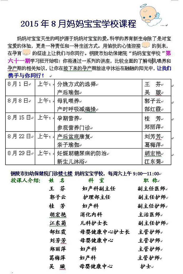 2015年8月妈妈宝宝学校课程