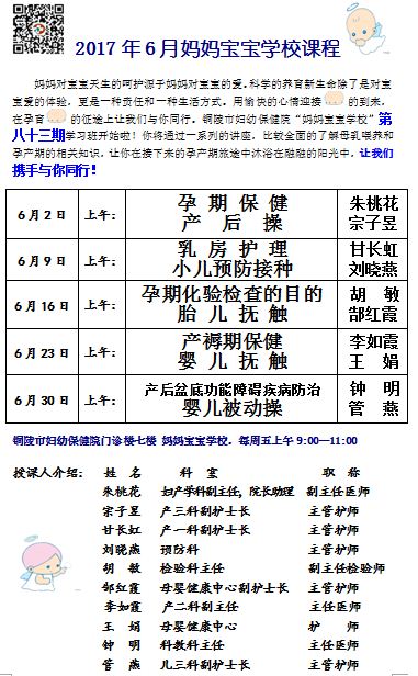 2017年6月妈妈宝宝学校课程