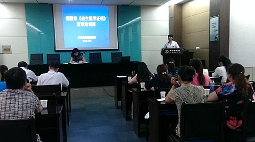 为贯彻实施《安徽省<出生医学证明>管理办法》,进一步加强和规范我市《出生医学证明》管理工作,日前,全市《出生医学证明》管理培训班在市妇幼保健院举办,来自市、县、区卫计局、妇幼保健所分管领导、全市助产医疗保健机构分管领导及签发人员参加了培训。 本次培训班重点内容是《安徽省<出生医学证明>管理办法》及《出生医学证明》相关政策及法律法规。培训结束后,各医疗机构《出生医学证明》签发人员还签署了《<出生医学证明>终身责任制承诺书》。