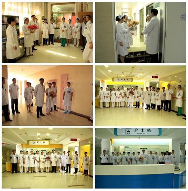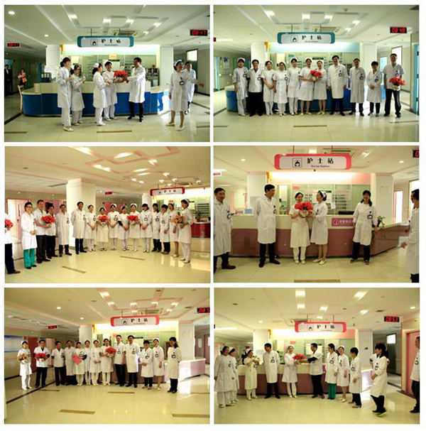 今年的“5.12”是国际护士节104周年。上午8时许,市四院党政领导在护理部主任的陪同下,带着一捧捧美丽的鲜花来到医院的18个护理单元和金口岭社区卫生服务中心、朝阳社区卫生服务站,为工作在一线的护理人员送上亲切的慰问和节日的祝福。护士姐妹们接过美丽的鲜花,与院领导合影留念,脸上洋溢着无限的快乐与幸福。领导们的真诚祝福,也令广大护理人员深受鼓舞,她们决心立足于本职工作,为病人提供更加优质的服务,以无愧于白衣天使这一称谓。