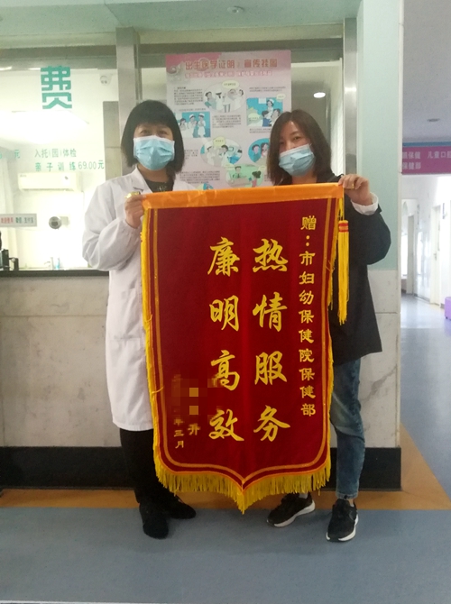 近日,郊区胡先生一家向我院保健部出生医学证明办理窗口送上了一面锦旗,上写“热情服务,廉明高效”,以表达他们全家的感谢之情。