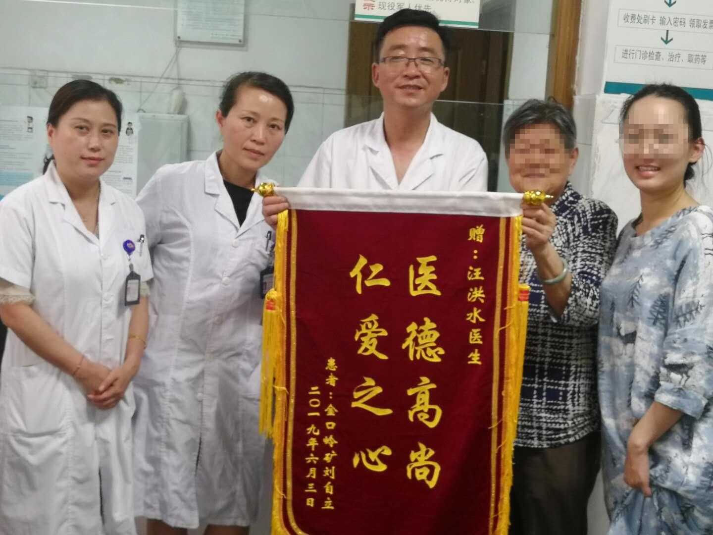 6月4日上午,家住金口岭矿的一患者家属,手拿着一面锦旗来到我院金口岭社区卫生服务中心,对中心汪洪水医生及其家庭医生服务团队在患者生病期间给予的精心健康指导和照顾表示感谢并称“你们真是老百姓健康的贴心人!”