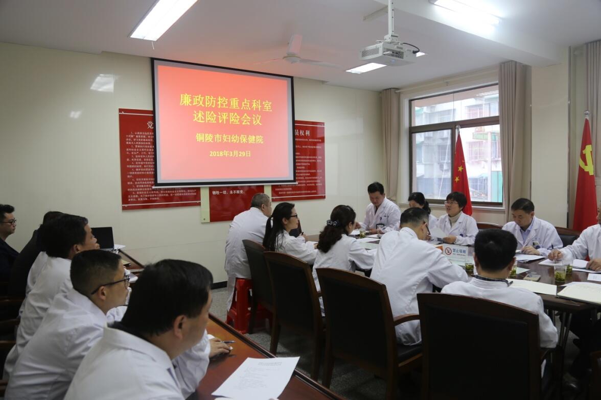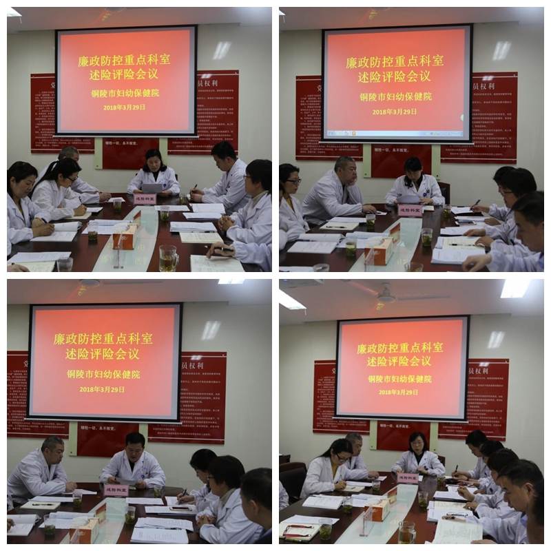 各重点部门负责人首先对本部门岗位廉政风险点进行阐述,并按照岗位职能、查找出的岗位潜在的廉政风险点,就如何进行防控、取得的成效、存在的问题、加强和改进工作的思路措施逐一进行述险评险。分管领导根据述险评险内容,逐一进行点评;参会人员对述评科室廉政防控工作进行了书面测评。