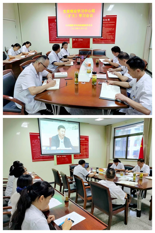 8月10日下午,我院召开党委理论学习中心组(扩大)学习会,集中学习习近平在中央政治局第二十一次集体学习时的讲话《贯彻落实新时代党的组织路线 不断把党建设得更加坚强有力》。党委书记於凤霞主持会议,党委委员、院长章秀,党委委员、副院长曹彬、国小满,党委委员、纪委书记张德明,以及各党支部书记参加学习。