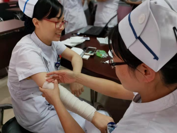 院前急救是急诊医疗服务体系的子系统,其中自然灾害造成的外伤急救水平直接体现了护士的急救能力。为了加强护士的急诊急救的意识,提高临床急诊急救的操作技能,本院急诊急救护理专业小组于2019年9月26日在六病区开展了外伤包扎的工作坊活动。首先,对灾难性事件的急救形式进行了理论培训;随后,开展了各类外伤包扎的实际操作演练。