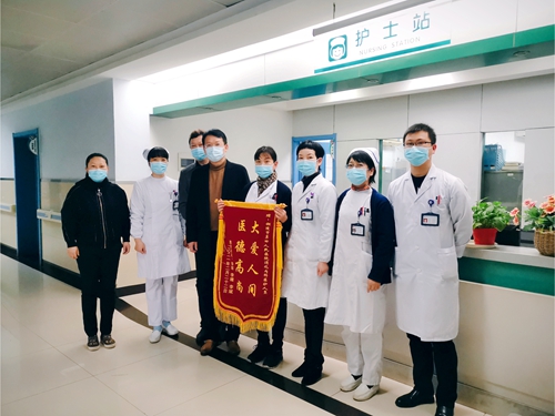 虽然病人最终因为疾病不可逆转已然过世,但家属为表示感谢,特意送来锦旗。锦旗上简洁的语言,包含了他们全家对我们深厚的信任和浓浓感激之情,更是对我院医疗技术水平及服务态度的肯定,它将激励着我们为这份所爱的工作奋斗一生。