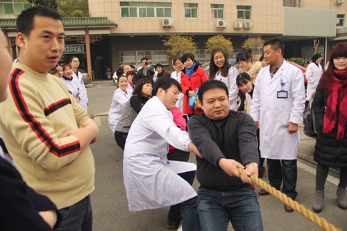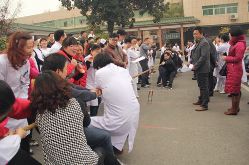 为丰富职工的文化生活,增强团队意识和集体荣誉感,展现我院职工积极向上的精神风貌,1月23日下午,由医院工会组织的职工系列文体活动——拔河比赛,在病房楼前广场激烈进行。