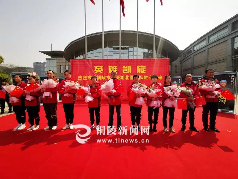 就在昨天,你们所在的酒店还为你们举行了欢送会,我们铜陵的队员们还集体上台表演了节目。当歌曲《朋友》的旋律响起,当现场所有人员参与到合唱中,我们听哭了!上午10时许,迎接队员们的大巴车到达铜陵长江公路大桥。