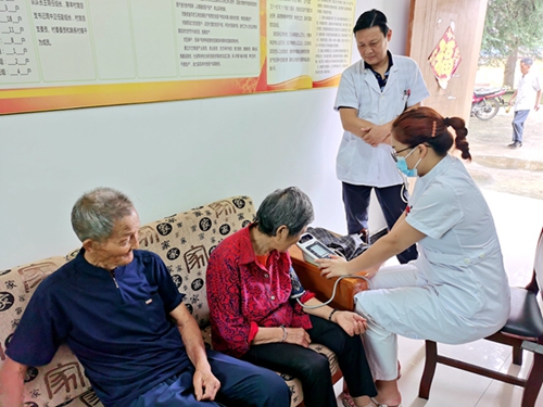 随行的医护人员仔细询问检查了防汛人员及临时安置点老百姓的身体状况,为每个人都进行了血压测量,分发了防暑药品,叮嘱他们在炎热的气温下防暑、防虫、防感冒、防创伤,注意身体健康,并介绍了简易应急处理办法。