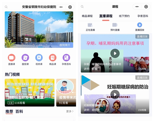 借助中国妇幼保健协会“孕校云”课堂平台,我院每周安排产科、儿科、保健等资深专家以线上直播的形式授课,内容涵盖孕期、产褥期和新生儿保健等相关知识,直播视频还可以回放和反复观看。