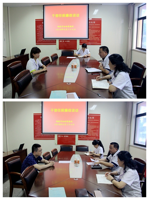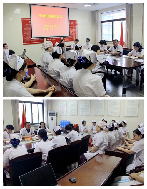 7月27日,院纪委书记张德明对新任职的25名行政管理科室和业务科室负责人开展了任前集体廉政谈话。