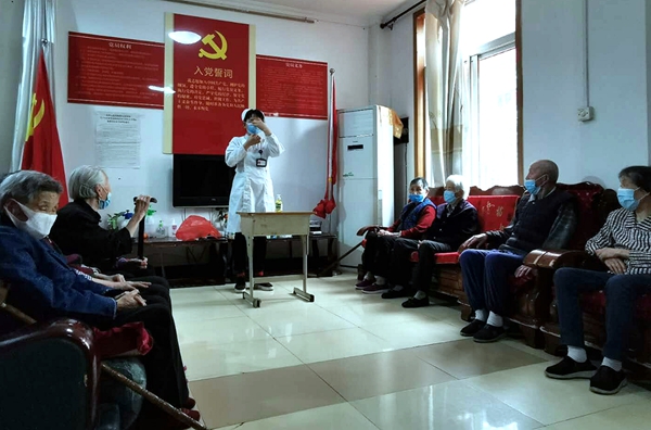 初夏之始,绿荫艳阳,鸟语花香。在这明媚的日子里,市第四人民医院护理部组织护理压疮小组一行6人,在组长彭琦的带领下,来到市朝阳养老院,给老人们送去一份特殊的“礼物”,即对长期卧床的老人进行现场检查、皮肤护理,对养老院的工作人员进行针对性的技术指导,并结合目前的新冠疫情防控,现场给老人们及工作人员演示如何正确佩戴口罩、教会他们正确洗手(七步洗手法),做好手卫生,指导工作人员消毒液的配置与使用,还给他们送去口罩、消毒液、酒精等防护用品。