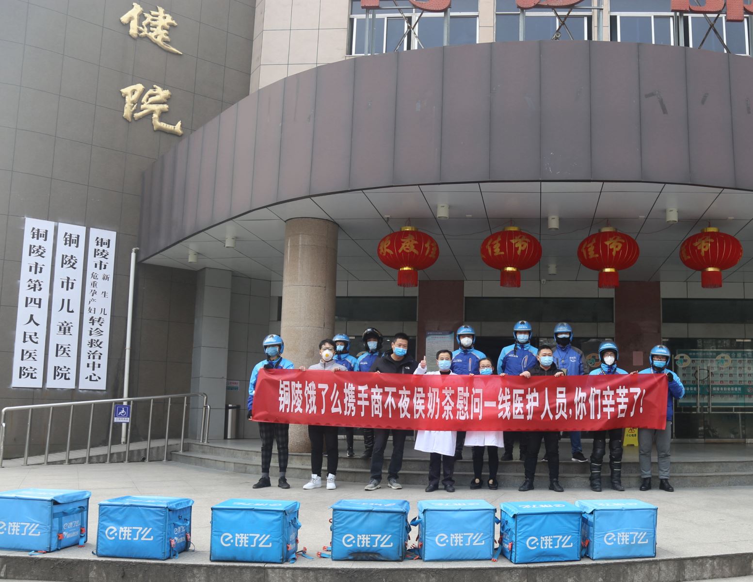 2月4日,铜陵“饿了么携手商不夜侯奶茶”来到我院,慰问战斗在防控新冠肺炎疫情的一线医护人员。在收到捐赠物品后,我院立即将捐赠物品发放给一线医护人员,让他们感到了阵阵暖意。我院国小满副院长表示,爱心企业和爱心人士的行为,不仅给抗击疫情以物资上的支持,更重要的是精神鼓舞。只要全社会团结一致、众志成城,积极应对,科学防控,就一定能打赢这场防疫攻坚战!