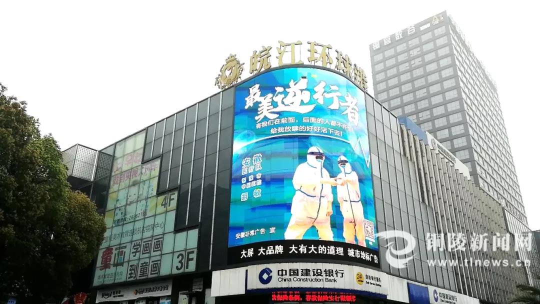 家乡人民期盼着队员们归来,沿途的地标建筑大屏上,循环播放首批返铜6名医护人员的海报。
