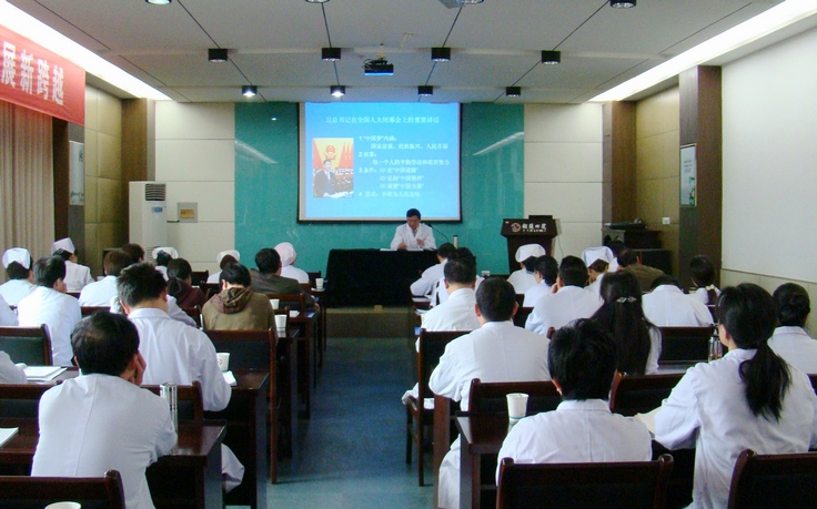 院党委书记、院长韩煌同志强调,全院干部职工要把传达学习十二届全国人大一次会议精神摆到重要位置,统筹安排,精心组织,切实抓紧抓好。要按照习总书记“心往一处想、劲往一处使”的指示要求,紧密结合我院实际,勇负责,敢担当,扎实完成好2013年各项工作任务,为我市卫生事业的改革和发展作出更大的贡献!