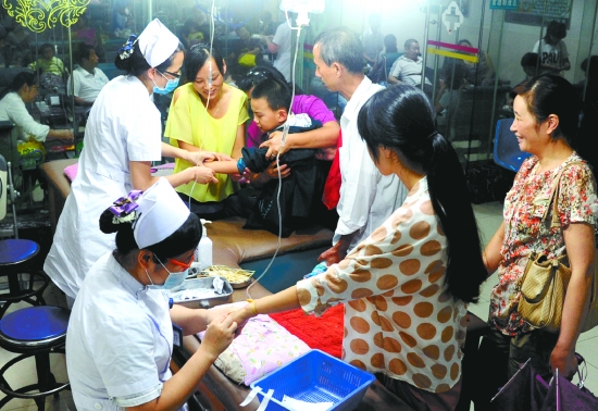8月13日,在市四院的输液大厅里,前来输液的患者络绎不绝。据了解,由于近期天气转凉,气温变化较大,不少市民患上感冒等疾病。每天前来该院就诊输液的市民达到300人左右。医生提醒广大市民,要及时增减衣物,保持室内通风,避免生病。