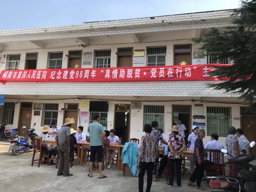 7月15日上午,我院党员志愿者来到枞阳县横埠镇联丰村,开展以“真情助脱贫.党员在行动”为主题的义诊咨询活动。活动中,共接受群众问诊200余人次,发放常用药品价值约千元。