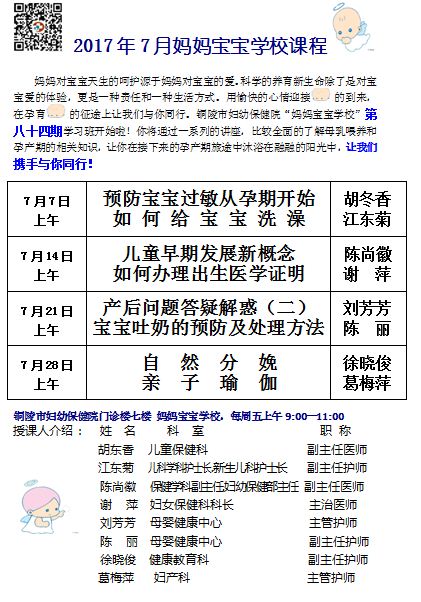 2017年7月妈妈宝宝学校课程