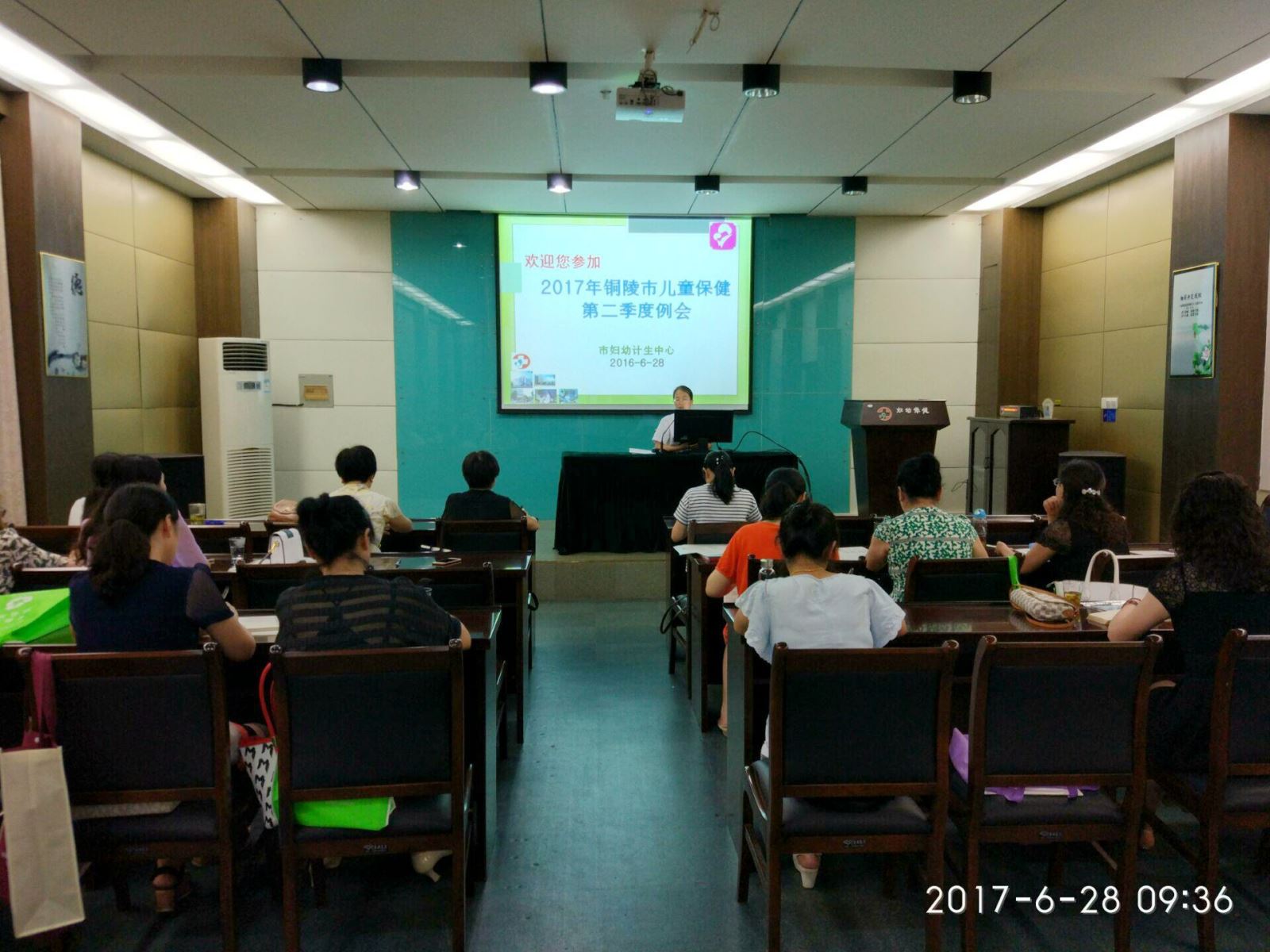 2017年6月28日上午,铜陵市儿童保健服务二季度工作例会在我院学术报告厅召开。全市三区一县妇幼计生中心儿童保健管理人员及铜官区各医疗卫生机构儿童保健业务人员共29人参加本次例会。 本次例会主要内容包括:一、省级妇幼专项半年考核现场反馈主要问题及改进措施;二、年报统计注意事项;三、各县区半年绩效考核主要指标及迎检准备;四、业务学习《早产儿保健服务指南》等。