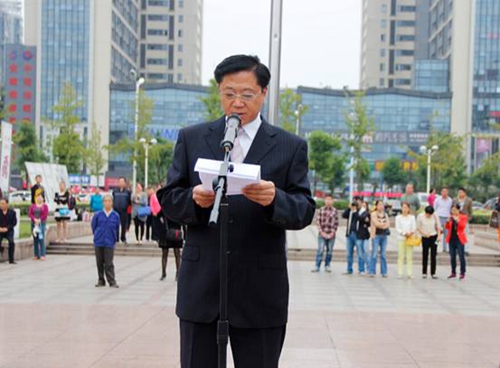 10月1日清晨,铜都广场歌声嘹亮,红旗飘飘,为纪念新中国成立65周年,铜陵市在这里举行升国旗仪式,市委副书记、市长倪玉平出席仪式并主持。