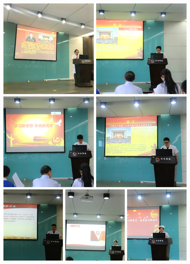 接着,7个团支部的7位代表紧紧围绕习近平总书记新时代中国特色社会主义思想和党的十九大精神进行了“学习新思想,争做新青年”宣讲比赛。他们联系医院、科室、个人的工作和生活实际,以真实感人、积极向上的工作经历和所见所闻,表达了对党、对医疗卫生事业的深情和热爱,争做新时代有理想有本领有担当的新青年。