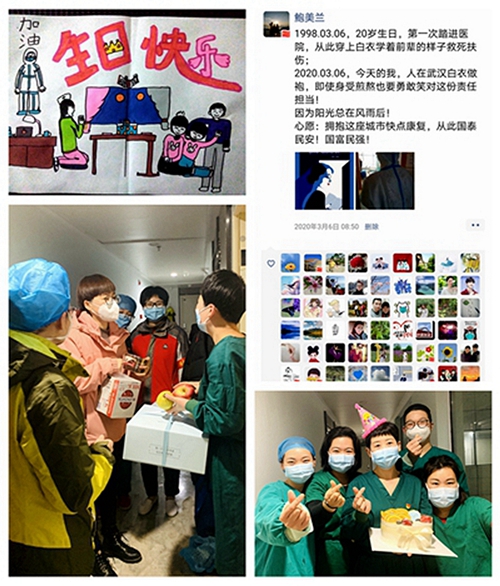 上午,铜陵台记者与我连线,与家人拍摄视频,爱人与女儿早早为我准备了蛋糕,就如女儿送给我的画上画的一样,我在武汉,她们在家,两地相隔,视频通话,一同为我庆祝生日。看到爱人把家里收拾的干净整齐,有条不紊,把孩子们照顾得很好,我很放心!孩子们长大懂事了,自觉听课学习,作业完成的很好,我很开心!下午,铜陵网上传了“铿锵玫瑰,“战地”生日”的新闻稿,我收到四面八方友人的祝福,这是我生日以来收到最多祝福的一次。