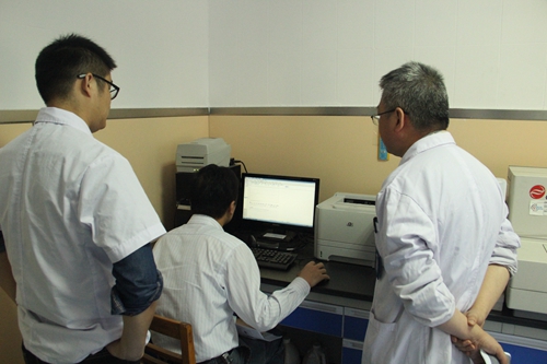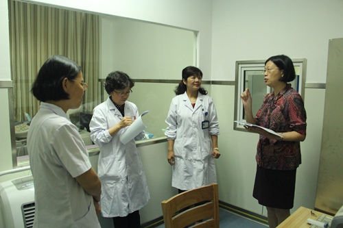 10月18日,省卫生厅专家组一行4人,来我院产前诊断中心进行现场指导。专家们依照产前诊断机构相关细则,从组织管理、遗传咨询与临床技术、实验室技术、医学影像技术等四个方面,通过现场实地考察、与工作人员交流等形式,对产前诊断中心的软硬件建设提出指导意见,帮助提高我院产前诊断服务质量