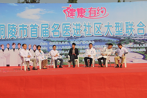 10月25日上午,我市首届名医进社区大型联合义诊活动在石城广场举行,我院按市卫生局统一部署安排妇产科、儿内科、儿外科和乳腺外科的6名医疗专家现场为市民答疑解惑。