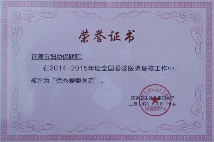 近日,国家卫生计生委妇幼司公布了全国100家优秀爱婴医院名单,我院经过省、国家的层层遴选,顺利通过复核评审,成功获评为“全国百家优秀爱婴医院”。