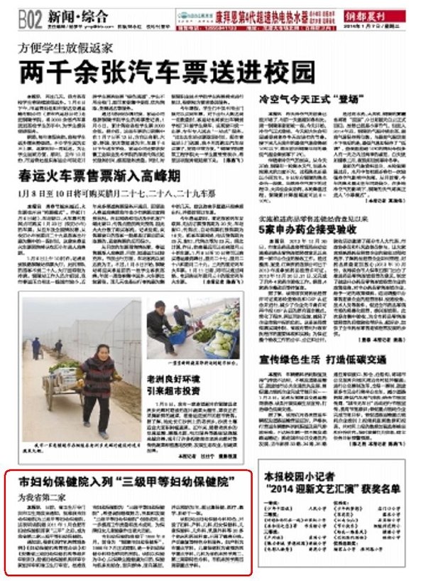 日前,省卫生厅专门向市卫生局发来通知,批准我市妇幼保健院为三级甲等妇幼保健院,这表明该院继2011年1月合肥市妇幼保健院首家“三甲”之后,成为我省第二家三级甲等妇幼保健院。