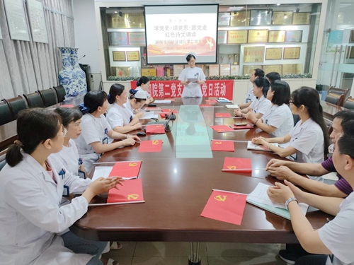 活动首先由高兰兰、杨娟、汪学琳、张晗4位党员代表诵读红色诗文。他们用慷慨激昂、声情并茂的朗诵,倾诉着对祖国母亲、对中国共产党的感激之情,让全体党员更好地感悟信仰之力、理想之光。接着,全体党员合唱经典红歌《唱支山歌给党听》,真挚热烈的情感,热情颂扬党带领人民走向胜利,用歌声抒发爱党爱国情怀,弘扬革命精神。最后,全体党员进行了党史知识测试,既重温了党的百年奋斗史,又激发了大家的党史学习热情,达到了以考促学,以学促干的效果。