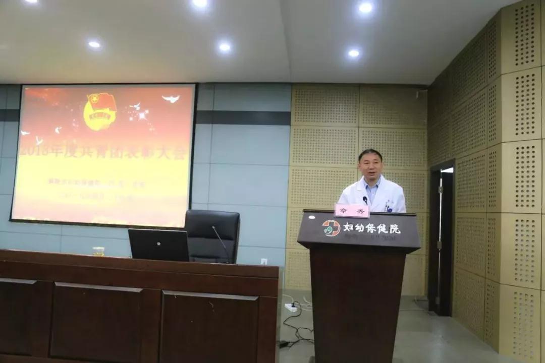 4月29日下午,在院一号楼七楼第一会议室举行了2018年度共青团工作表彰大会。院领导、各职能部门负责人、各临床医技科室主任、护士长、党员、各团支部书记及优秀共青团员代表参加了表彰会。会议由院党委委员张德明同志主持。