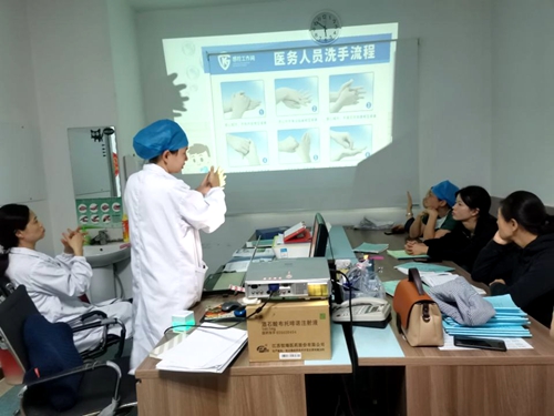 日前,院感科和临床各科室感控员深入临床一线,在产房、麻醉手术科、社区等各种场合开展了数场手卫生培训,内容涵盖手卫生的指征、操作步骤、手消毒剂(洗手液)的选择,并结合2020年6月1日起实施的新版《医务人员手卫生规范》、2020年11月1日即将实施的国家标准《手消毒剂通用要求》更新内容展开重点培训。