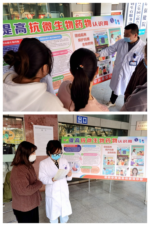 为广泛宣传抗微生物药物合理使用知识,提高社会公众和医务人员对耐药危机的认识,11月18日上午,我院药学部组织药师咨询团队对来院患者进行抗微生物药物合理使用现场宣传和咨询。活动现场布置了抗微生物药物合理使用的科普宣传展板,还制作了若干与主题相关的宣传手册发放给前来咨询的患者,同时药师们向公众普及抗微生物药物合理使用的知识和重要性,对公众常见的一些抗微生物药物使用知识进行了现场解答,从而提高了社会公众和医务人员对细菌耐药危机的认识,牢固树立了抗微生物药物合理使用的观念,纠正了公众使用抗微生物药物的误区,达到了提高抗微生物药物认识周活动的要求。