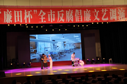 廉田沃土百花开,清风拂面香满怀。9月2日下午,“廉田杯”全市反腐倡廉文艺调演在市行政会议中心礼堂举行,由我院医务人员自编自导自演的小品《红包》代表市卫生局参演。