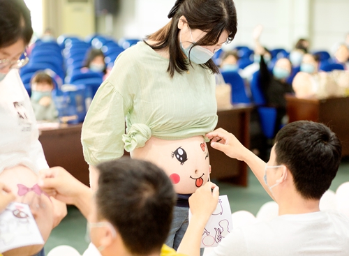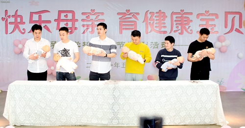 在产、儿科专家的指导下,准爸们还体验了给宝宝兜尿不湿、穿连体衣等环节。准爸们感慨地说,通过此次活动,加深了对爱人辛苦孕育宝宝的了解,今后会更加地感恩母亲、疼爱妻子、关怀宝宝。