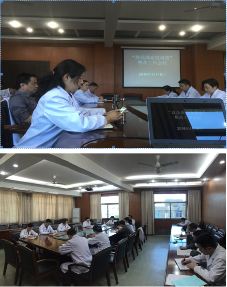 会议一是就2015年医疗机构群众满意度调查结果进行反馈;二是认真分析我院主要存在问题,成立了专项工作小组,讨论改进措施并要求严格执行。