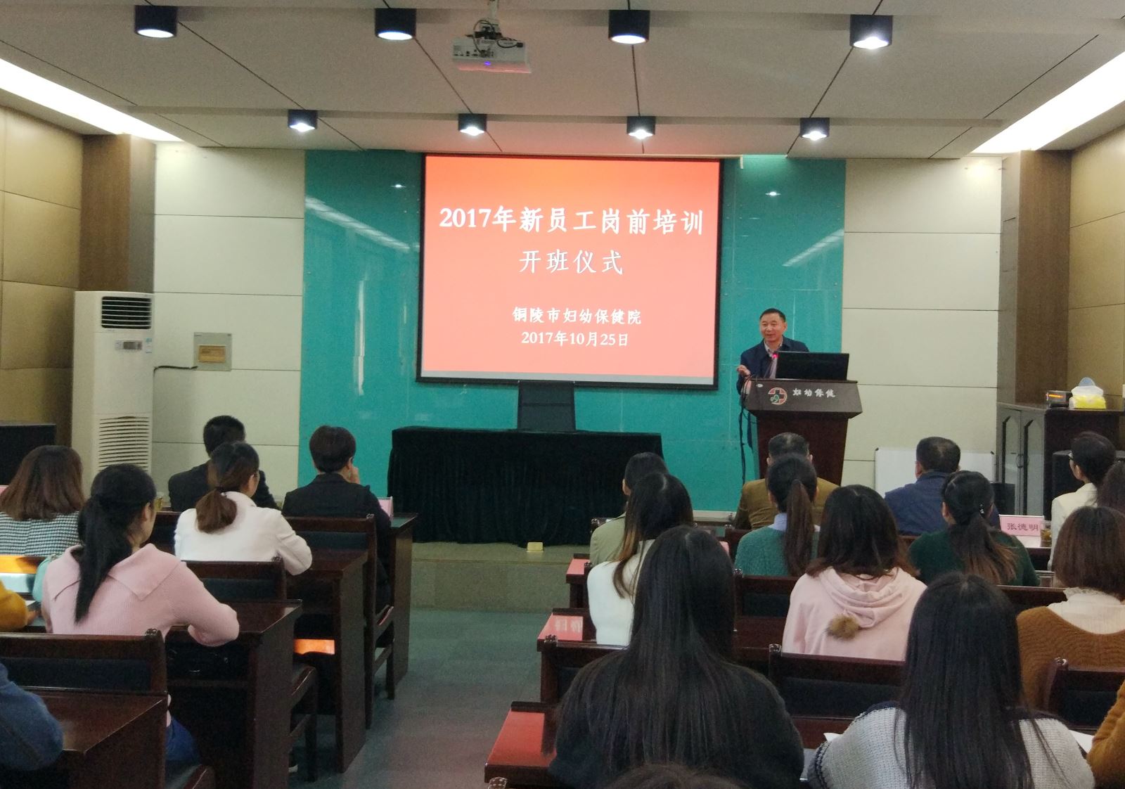 10月25日上午8时20分岗前培训开班仪式在院七楼学术报告厅举行,仪式开始前进行了学员之间的交流和自我介绍。全体院领导出席了开班仪式,章秀副院长代表院领导班子和全体职工对新员工表示热烈的欢迎,并将我院自成立以来走过的艰苦历程和自强发展的点点滴滴与大家分享,使参训学员不仅了解了妇幼卫生工作的重要性;熟知了医院的发展历史与文化;明确了“突出妇幼保健专科特色,增强医疗保健服务能力”的办院方向和“保健与临床相结合,全心全意为妇女儿童健康服务”的宗旨;决心去继承并发扬医院的光荣传统,争做优秀员工。
