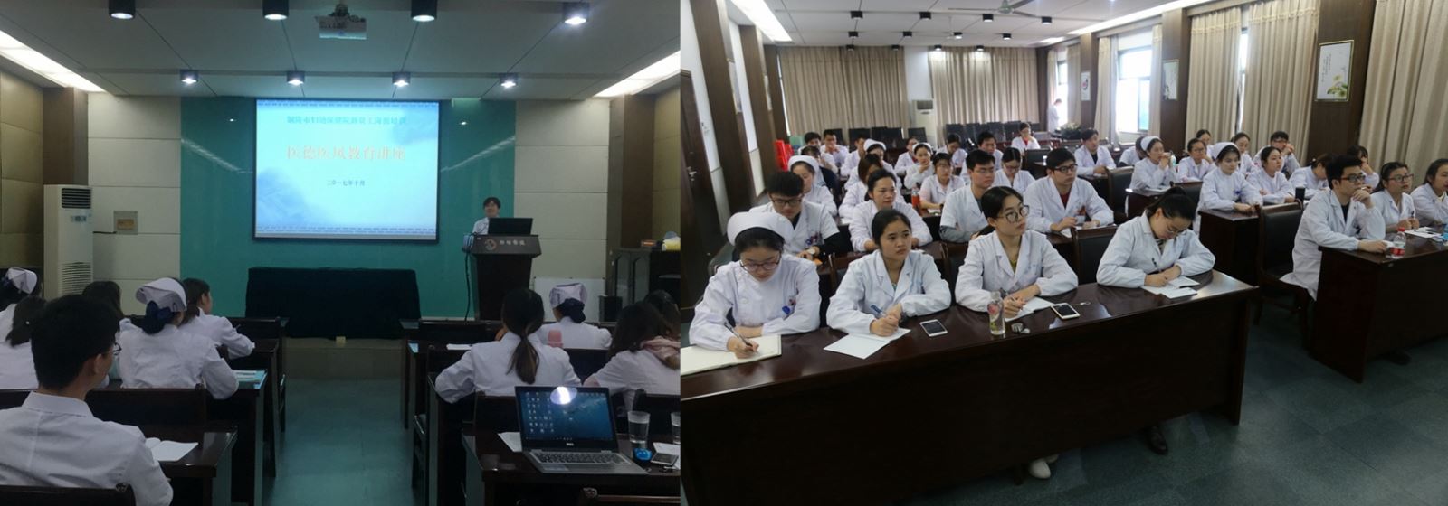 院领导及部分职能科室负责人参与授课。分别就行风廉政及医务人员职业道德规范教育,医院人事管理制度,员工福利待遇、个人晋升通道,消防安全,医院感染管理,医疗相关法律法规、医疗文书书写规范、患者安全、隐私保护和知情同意,母乳喂养知识等等作了介绍。本次培训邀请了院党委委员、副院长、主任医师曹彬及儿科学科护士长、副主任护师江东菊分别以自身经历为新员工上了一堂生动的“我的从医之路”公开课,从个人立志讲述了老一辈妇幼人的艰辛,生命相托的重要意义;还请在省市急救技能大赛均获奖的阮海燕和孙玉红为大家现场演示了心肺复苏操作。