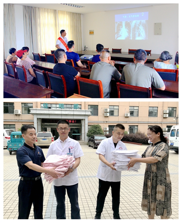 8月6日上午,院党委书记於凤霞、副院长国小满和院孕产保健部部长朱桃花以及院第五党支部的多名专家,来到义安区钟鸣镇开展义诊和健教宣讲活动。 活动现场,专家们为群众测量血压,详细询问身体状况,为他们分析病情、解答疑问,期间,黄召金、汤胜君两位专家还用通俗易懂的语言为当地群众讲解了“肺癌早发现早诊断”和“如何预防结直肠癌”的健康知识。 当天的义诊活动,我院还向钟鸣镇中心卫生院捐赠了一批医疗物资,并给参加义诊的群众发放了民生工程宣传品和夏季防暑降温常用药品。