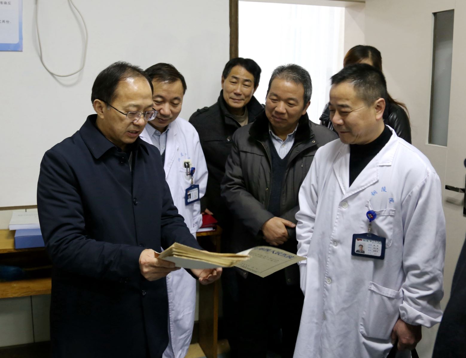 12月29日上午,省档案局(馆)程潜龙副局(馆)长,带领省档案行政执法督查组专家一行四人,在市档案局潘玉强科长和卫计委陈为副调研员、卫计委办公室吴春燕副主任陪同下,莅临我院检查档案管理工作。院主要负责人章秀、副院长国小满、院长助理张德明接待了检查组一行,院医务处、办公室、计划财务部、总务科、器械科、科教科等部门负责同志及相关档案管理人员也参加了此次迎检工作。