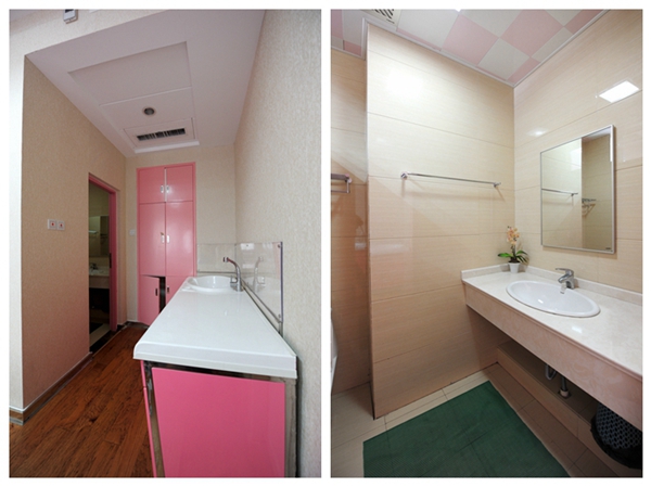 休息室内,沙发、躺椅、茶几、冰箱、洗衣机、饮水机、衣柜、橱柜等家具一应俱全,真正满足了一家人生活起居的需要;产房内,陪护床、“一体化产床”、婴儿辐射保暖台、婴儿床、婴儿洗澡台、婴儿按摩室、24小时热水供应等设施,保证了产妇、新生儿的舒适与惬意。