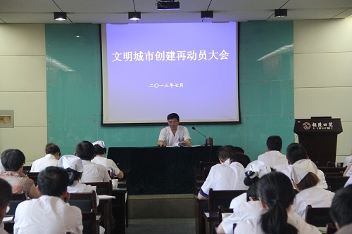 7月16日下午,市妇幼保健院创建全国文明城市工作再动员大会在学术报告厅举行。会议的主要目的是动员全体职工以更加饱满的斗志,更加务实的态度,更加顽强的作风,更加有效的措施,掀起新一轮创建高潮,为我市争创全国文明城市贡献力量。