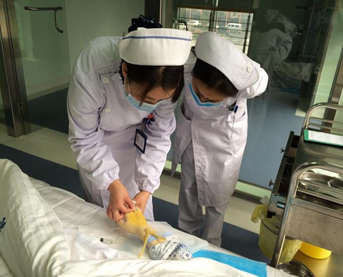 培训现场,参训的主管护师们在认真听过讲解、观看过操作示范后,依次进行了静脉留置针穿刺置管的操作,大家均认真进行病人评估、用物准备,严格执行身份核对制度,消毒、穿刺、送管、封管、固定,耐心地为“患者”进行健康教育,最终,全部参训人员均通过本次操作考核。